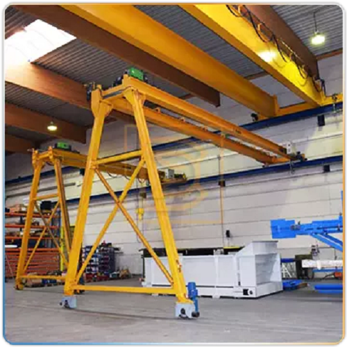 - Bán cổng trục dầm đôi giống như một chiếc cổng với 1 chân được chống xuống mặt đất. 1 đầu dầm trục bên kia gác lên một vị trí khác của nhà xưởng với chiều cao tương ứng. Thiết bị này được thiết kế cải tiến giúp nó luôn có 1 chân chạy dưới đất , đầu còn lại chạy trên ray lắp trên cột nhà xưởng. Nó thực hiện chức năng nâng hạ cũng giống như các loại cổng trục thông thường.