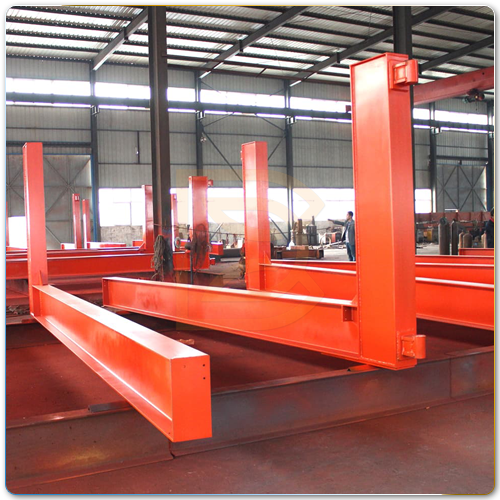 - Kết cấu thép: bao gồm cột trụ và dầm chạy palang. Cột trụ thường có tiết diện ngang cột là hình vuông rỗng hoặc hình tròn rỗng. Đối với tiết diện hình vuông thì được hàn tổ hợp từ thép tấm, còn với tiết diện hình tròn thì được chế tạo từ thép ống công nghiệp.