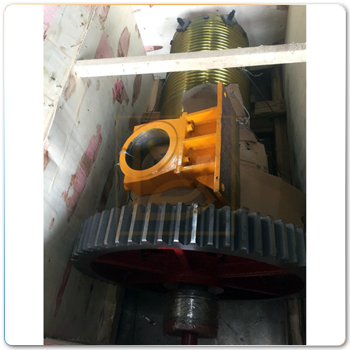 - Tiếp đến là lắp động cơ vào dầm biên, thông thường vị trí này kết nối kiểu mặt bích & bulong. Lưu ý các bánh răng truyền động cần được bôi trơn trước khi lắp.