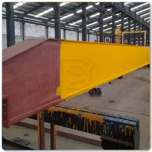 - Đây là công đoạn cuối cùng, khi tấm đáy & mặt bích đầu dầm được hàn lại hình thành lên khung dầm chính.