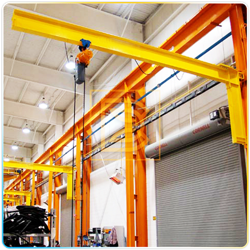 - Kết cấu khung dầm: hay còn gọi là dầm chạy của palang, nó là phần kết cấu thép đỡ toàn bộ lực khi nâng; khung dầm phải đảm bảo kết cấu vững chắc, an toàn và đủ khả năng chịu lực cũng như tải trọng trong quá trình hoạt động. Dầm chạy palang được chế tạo từ thép I định hình, I tổ hợp hàn. Palang được treo dưới dầm và chạy trên dọc chiều dài của dầm. Dầm này quay quanh cột và có thể quay với góc quay < 360 độ tùy theo nhu cầu của người sử dụng mà có những phương án thiết kế góc quay khác nhau sao cho phù hợp nhất.