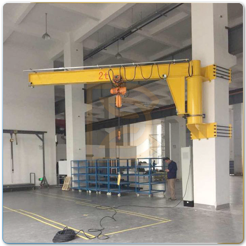 - Cơ cấu quay cần: là cơ cấu quay được dẫn động quay bằng tay kéo. Cần để treo palang được quay bằng sức của người sử dụng thông quay một sợi dây xích được treo ở đầu cần giúp cho việc dịch chuyển vật nâng quay theo ý muốn của người vận hành; cơ cấu quay cần phải đủ vững chắc và an toàn đồng thời phải vận hành êm và đủ khả năng chịu tải của cầu trục xoay áp cột khi vận hành.