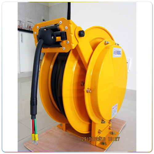 - Chiều dài cáp điện trên tang chính là bán kính hoạt động của cổng trục. Tang cuốn cáp lấy điện từ tủ nguồn được đặt ở đầu hay giữa đường chạy để cung cấp lên cho cổng trục. Tốc độ cuốn/ nhả cáp phù hợp với tốc độ di chuyển dưới 20 m/min.