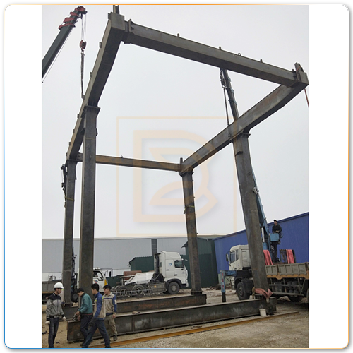 - Dầm biên bao gồm: dầm hộp, cụm bánh xe di chuyển & động cơ truyền động.