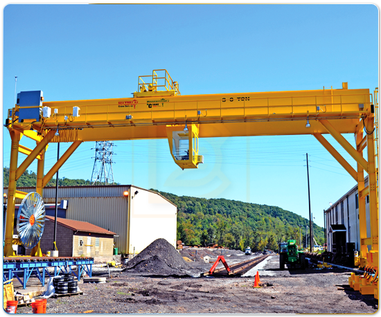 2. Nó là thiết bị dùng để nâng/hạ & di chuyển hàng hóa có kích thước cồng kềnh, khối lượng lớn tại khu vực tập kết vật tư ngoài trời hay trong nhà máy sản xuất bê tông, sắt thép, công trình xây dựng...