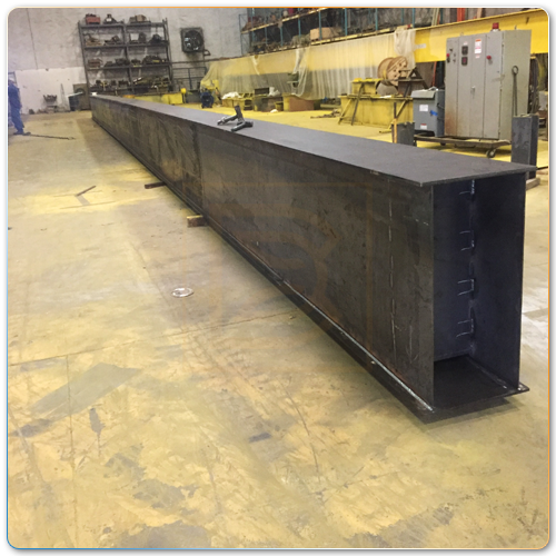 + Dầm chính được tổ hợp từ thép tấm(cắt ra từ Máy cắt plasma CNC theo kích thước định sẵn) & được liên kết chặt chẽ với nhau qua các mối hàn. Nhằm đảm bảo tính chịu lực & độ võng thiết kế theo TCVN.