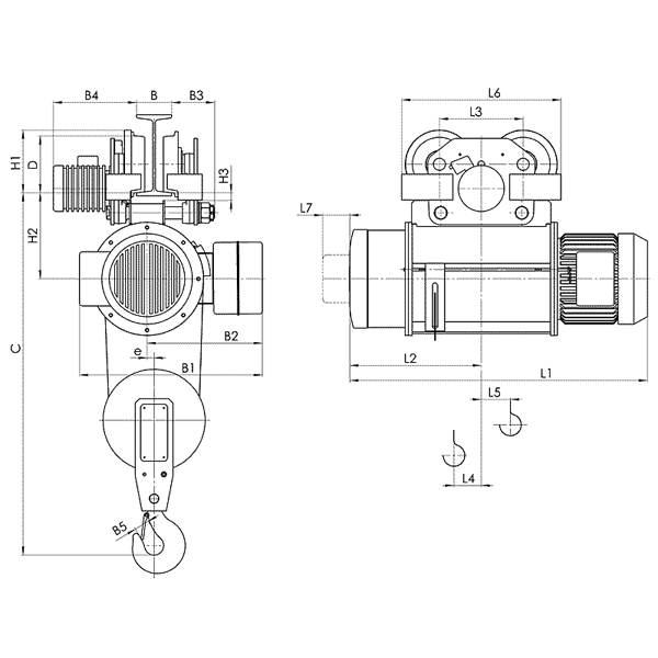 Bản vẽ palang cáp điện Balkansko - Dầm đơn, dòng MT, 4/1, 2 - 6.3 Tấn