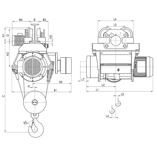 Bản vẽ palang cáp điện Balkansko - Dầm đơn, dòng T39