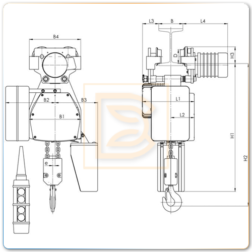 Các thiết bị đi kèm và kiểu lắp đặt của palang xích điện Balkansko dòng BE