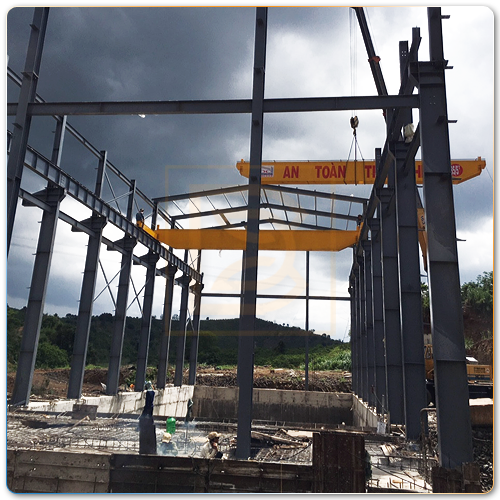 3. Xe con cầu trục là thiết bị nâng chủ yếu trong các công trình thủy điện, nhà máy luyện kim hay sản xuất bê tông.