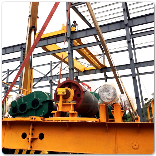 - Sau khi xe con được đặt lên dầm chính. Hệ điện dọc & hệ điện ngang cấp nguồn cho cầu trục bắt đầu được lắp đặt.